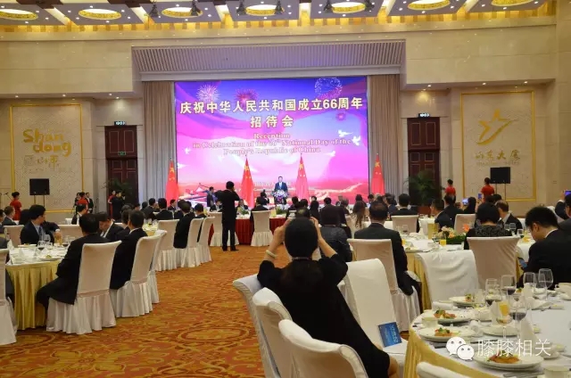 2015年9月29日晚省政府在济南举行招待会,庆祝中华人民共和国成立66周年,日本驻青岛总领事远山茂、韩国驻青岛总领事李寿尊夫妇等出席招待会。山东源生制药有限公司在内的15家省内外资企业受邀参加会议。
